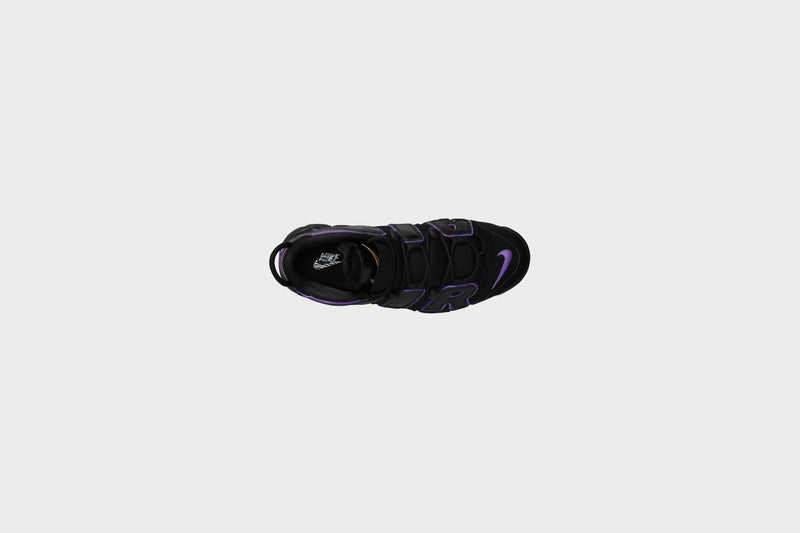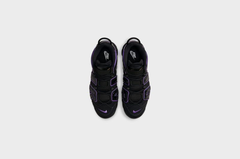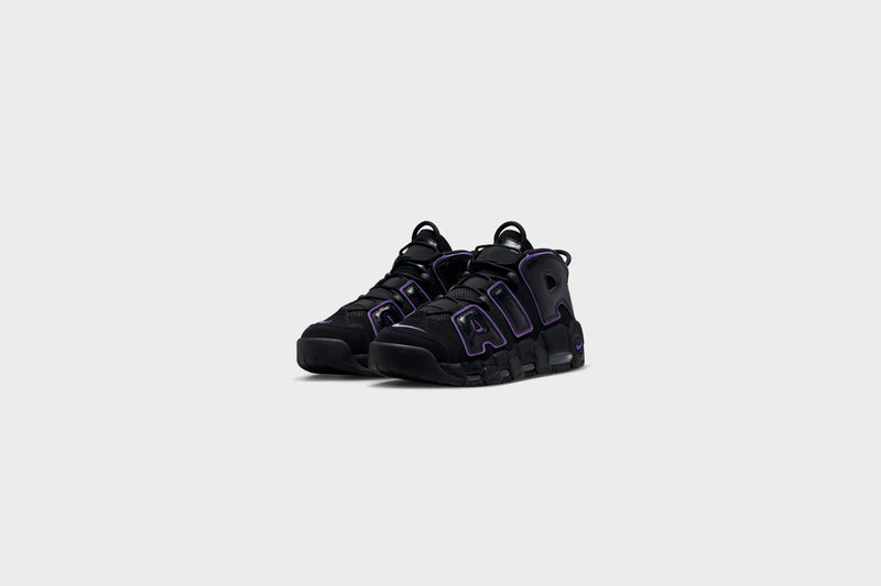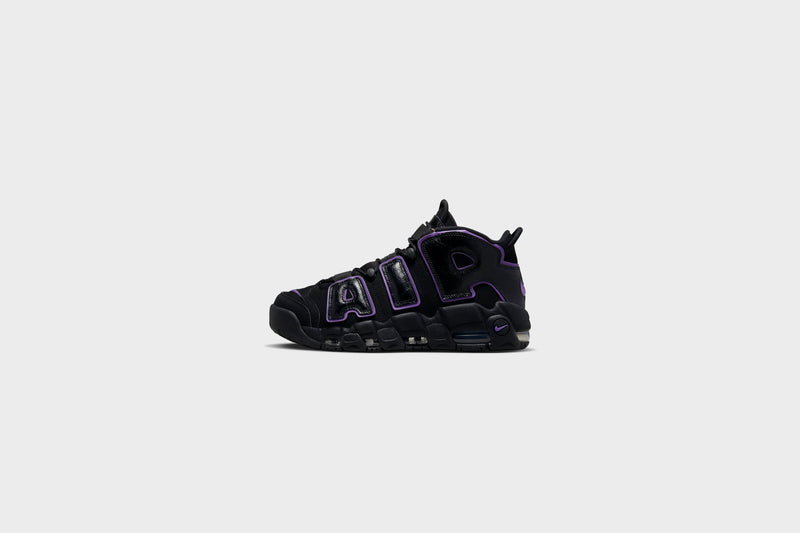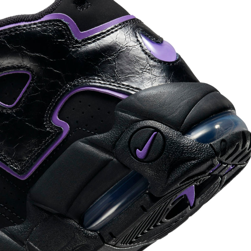Bring original hoops style back to the streets with the Air More Uptempo. Crumpled leather accents and energetic pops of Action Grape put a fashion-forward twist on the ’90s icon whose graffiti-styled graphics have always been a bold, off-court fave. Visible Air cushioning delivers the comfort you need, while elastic straps over the tongue keep your style sharp whether you rock them laced or unlaced.