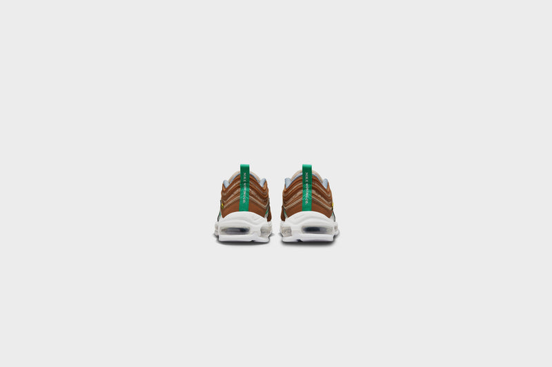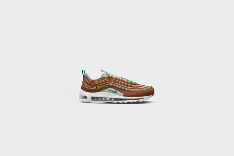 Find out what moves you in the Nike Air Max 97. Our iconic design, originally inspired by Japanese bullet trains, now tells a playful story rooted to our history of moving people. The textile upper, hemp accents and snail-trail stitching nod to our fictional “NIKE MOVING CO.” And to top it off on the bottom, visible Nike Air cushioning lets you ride in first-class comfort. So, where next?
