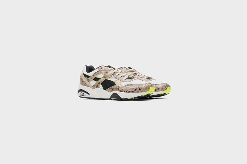 The Puma R698 Classic takes on a retro ‘90s aesthetic. Featuring a mesh upper with suede and nubuck overlays, it incorporates an IMEVA midsole that provides further comfort with each step. The Puma Formstrip is seen at the lateral side, while the printed and debossed Puma cat logo and TRINOMIC branding at the heel rounds out the design.