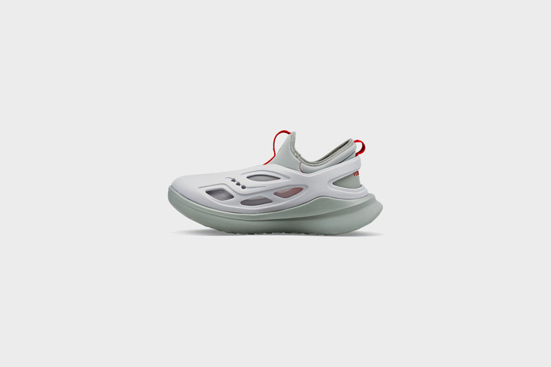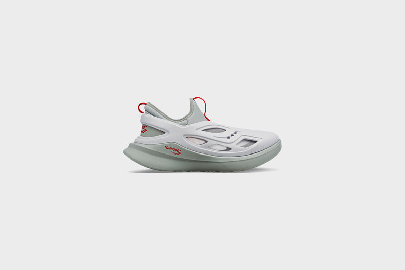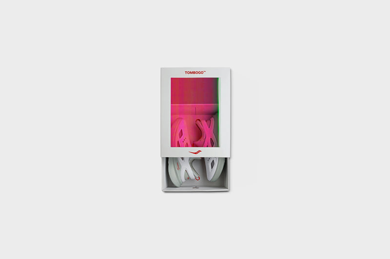 Unique in its design, the ‘Butterfly’ takes Saucony’s functionality and performance know-how and combines it with TOMBOGO™’s abstract creativity. This brand new silhouette consists of a modular inner boot, and a foam ‘clog’ shell that sits on top of Saucony’s iconic PWRRUN performance cushioning, giving the user the ability to run comfortably in the product if they choose to. With Saucony’s heritage in running, the brands elected to construct the upper shell with a fixed back heel strap keeping the design always in ‘sport mode’.