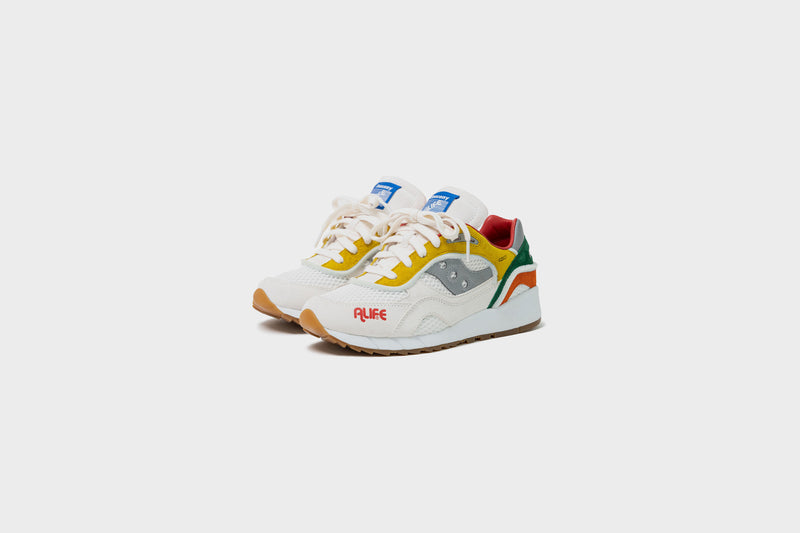 Summoning 1991’s best high-mileage running shoes, these classics support and flex perfectly with the killer cushioning you expect from Saucony. Indulge yourself with suede and leather that give this retro athletic shoe that classic look as well as embellished with the Alife Logo. Throw on your Shadow 6000 and break a sweat in the balanced running fashion sneakers you’ve rocked since back in the day.