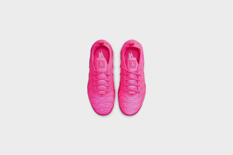 The Nike Air VaporMax Plus looks to the past to propel you into the future. Nodding to the ’98 original with its floating cage and padded upper, it adds heel-to-toe VaporMax Air technology to ramp up the comfort and create a modern look. A vibrant pink colorway highlights the head-turning design, helping you walk into tomorrow with style.