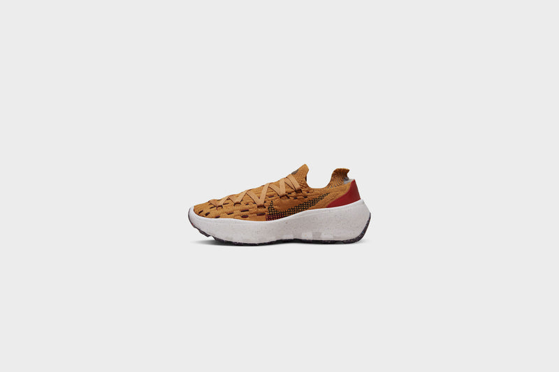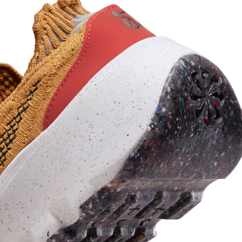Space Hippie is a story of trash transformed. From the upper to the outsole, Space Hippie 04 is made of at least 25% recycled material by weight. Not only is it the most lightweight silhouette within the collection, its ‘Space Waste Yarn’ upper includes recycled content—made from recycled plastic bottles, t-shirts and yarn scraps—for a lower carbon footprint. A soft, Crater Foam midsole combines Nike grind with a blend of foams for stability and a unique aesthetic.